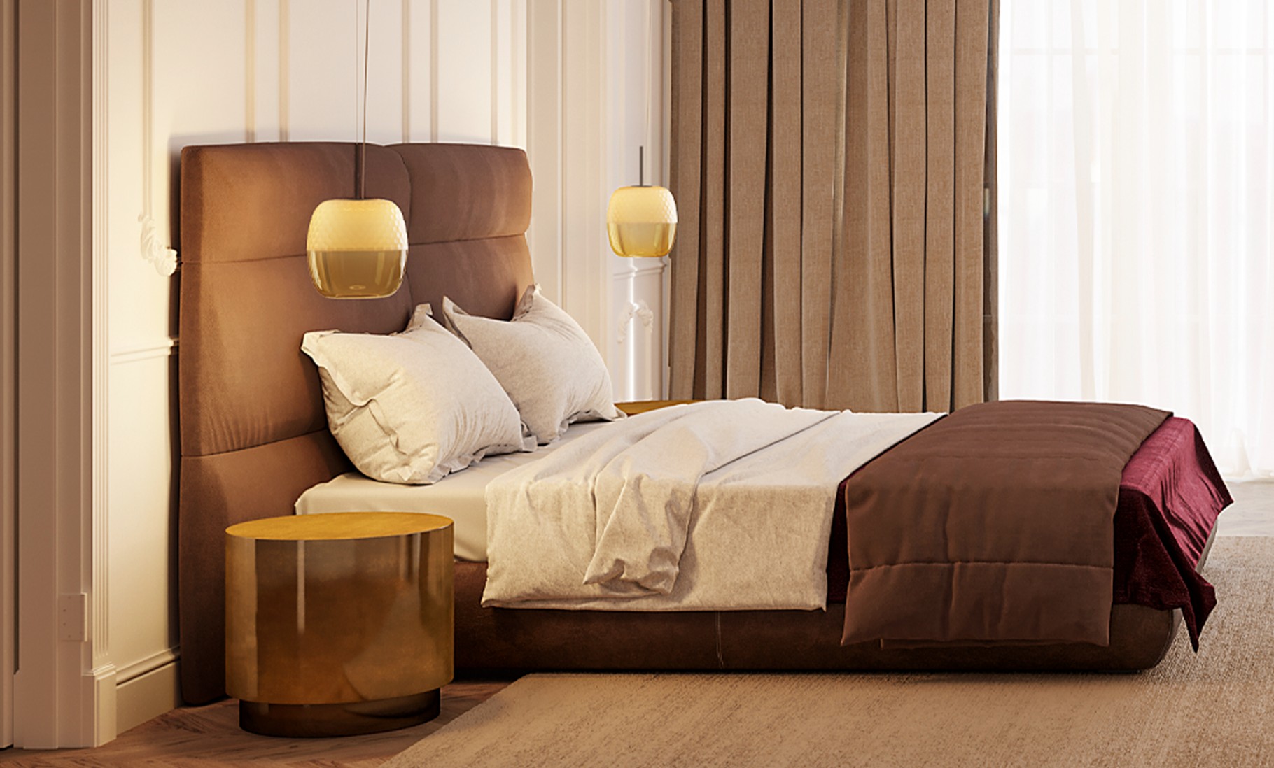 Structuur mat zwart en mat messing, glas in brons, gerookt grijs, bosgroen of roze