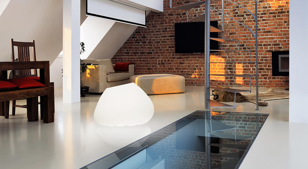 Verlichte buitenkruk in wit polyethyleen.