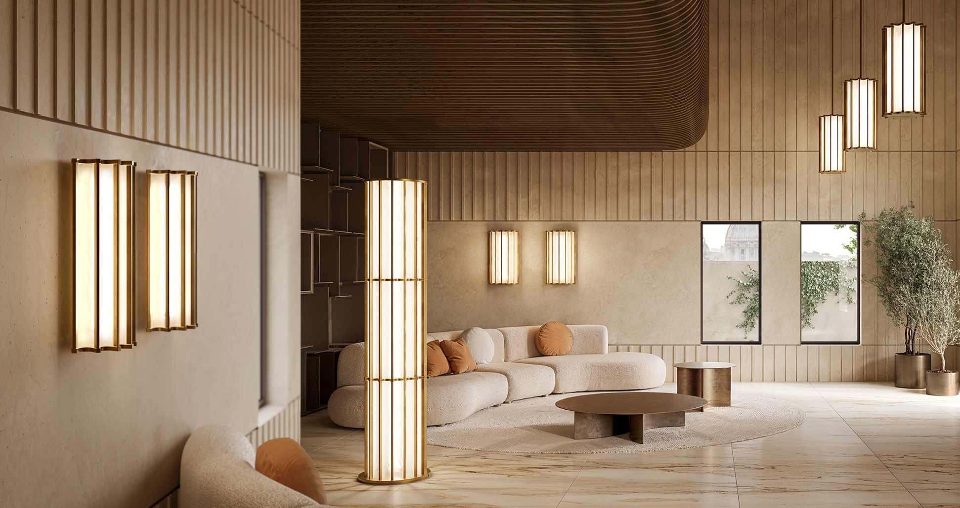 Ø380mm H1860mm of H1970mm (travertijn voet)